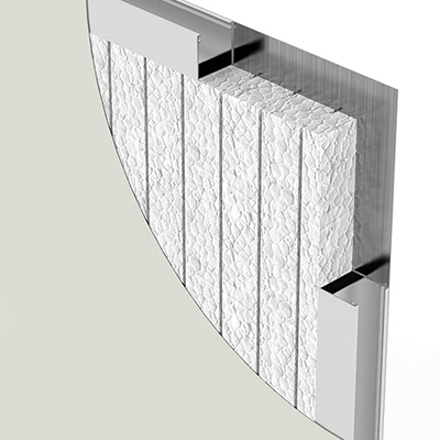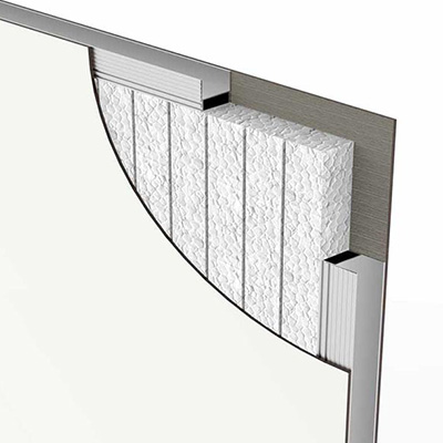 I pannelli modulari in alluminio Delta2000 possono essere applicati a pareti, soffitti, porte e pavimenti.