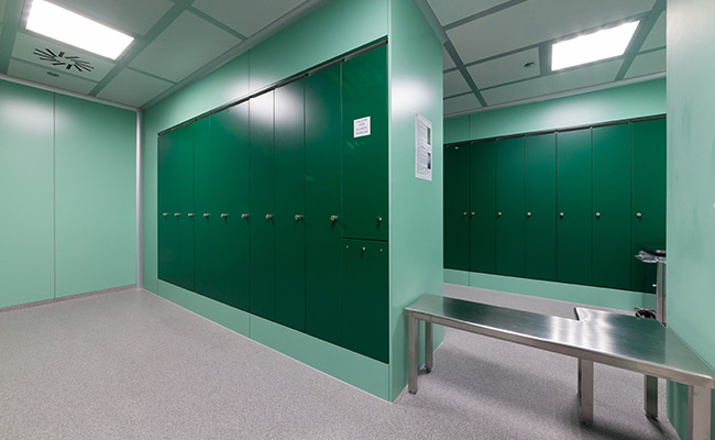 Armadietti e panche DeltaFURNITURES sono progettati per posizionare gli indumenti, quali ad esempio camici protettivi e calzature sterili, utilizzati all’interno di ambienti asettici.
