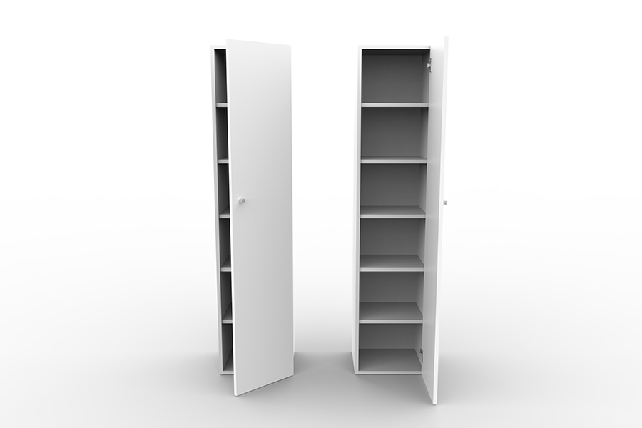 Одностворчатые шкафы DeltaFURNITURES вручную собраны и отфрезерованы, а их края загнуты с помощью специального оборудования. Они выполнены из высокопрочного HPL-пластика (ламината высокого давления), используемого для отделки чистых помещений.