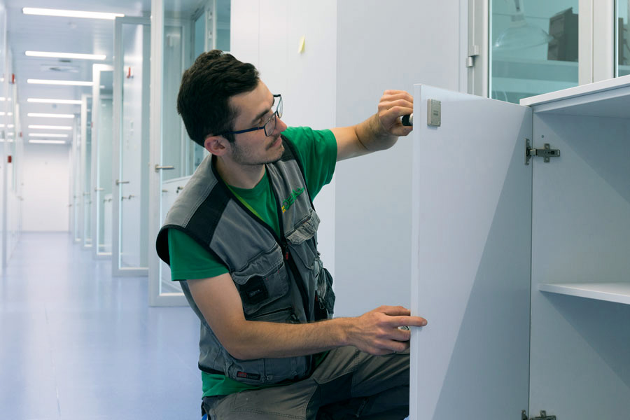 Команда, которая устанавливает наши чистые помещения и спроектированные нами среды с контролируемым загрязнением, знает о деликатных процессах, характеризующих этот этап: от планирования до транспортировки, до фактической установки каждого отдельного элемента и ввода в эксплуатацию.